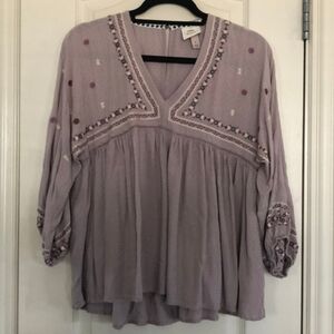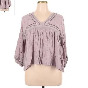Knox Rose Peasant Top Lilac Purple Women's XL Boho Bohemian Embroidered Details