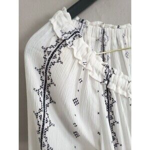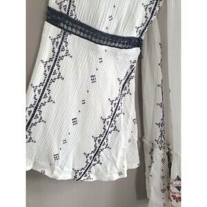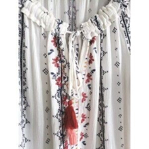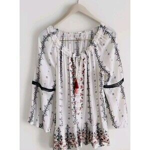 Knox Rose Peasant Top Women's Medium White Floral Boho Tassels Bell Sleeve