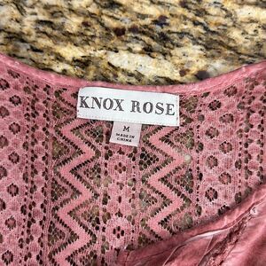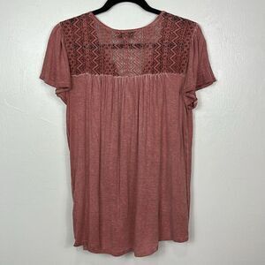 Knox Rose Pink Jam Flutter Short Sleeve Lace Panels Blouse Top Size M