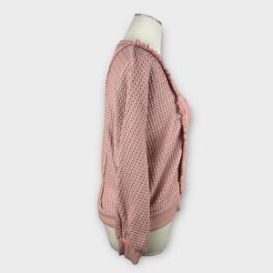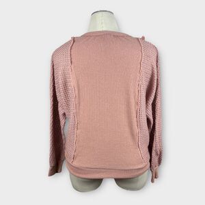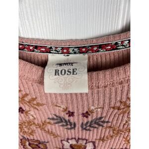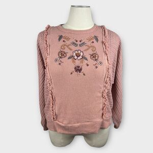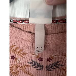 Knox Rose Pink Waffle Knit Floral Embroidered Raw Hem Sweater Top XXL Boho