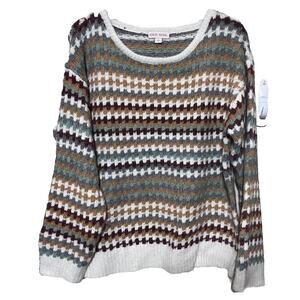 Knox Rose Pullover Knit Sweater Multi Color Sz Small Cozy Cabincore