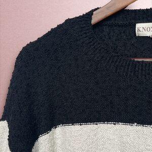 Knox Rose Pullover Sweater Women Size M Black White Striped Long Sleeve