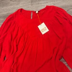 Knox Rose Red Boho Peasant Blouse 3X Plus Size Flowy Long Puff Sleeves Cottage