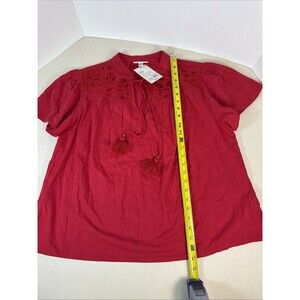 Knox Rose Red Eyelet Boho Tassel Blouse Size Large Flutter Short Sleeve