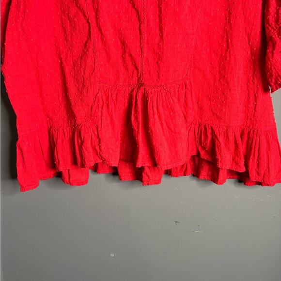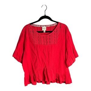 Knox Rose Red Pin Dot Short Sleeve Blouse Crochet Detailing Size XXL