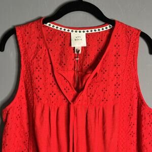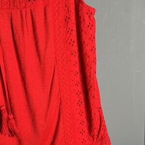 Knox Rose Red Sleeveless Top With Eyelet Detail and Tassels Size Small