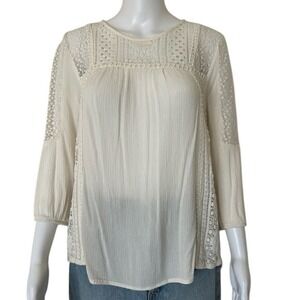 Knox Rose Round Neck Crochet French Lace Ivory Pheasant Blouse Top - M