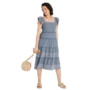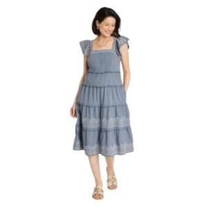 Knox Rose Ruffle Embroidered Tiered Dress Small