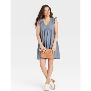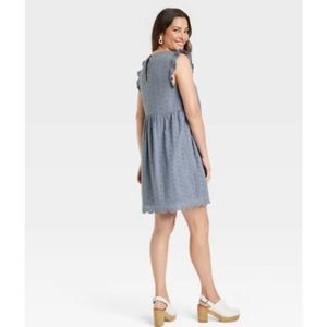Knox Rose Ruffle Short-Sleeve A-Line Dress Steel Shore Gray Size Medium wom 208