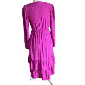 Knox Rose Ruffled Bottom, Textured Wrap Midi Dress-Purple-Size XS-GUC