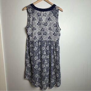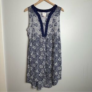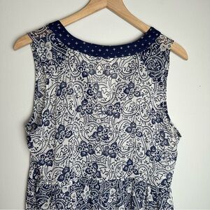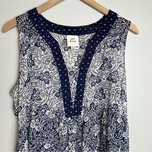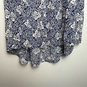 Knox Rose Sheer Boho Paisley Sleeveless Hi-Low Tunic Blouse, Size L, Navy Blue White