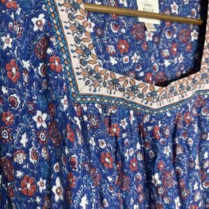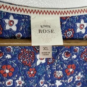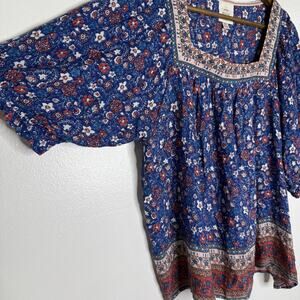 Knox Rose Shirt Womens XL Blue Boho Floral Square Neck Border Print Peasant