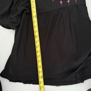 Knox Rose Shirt Womens XXL Black Magenta Flutter Short Sleeve Embroidered Top