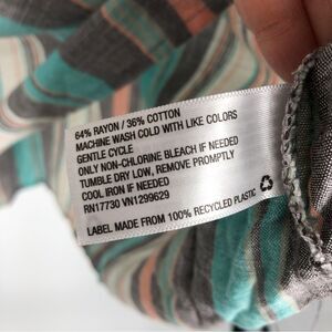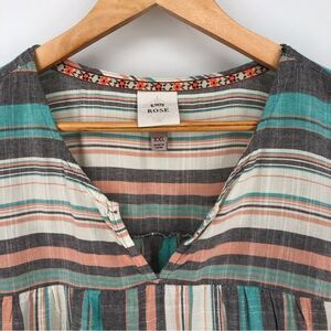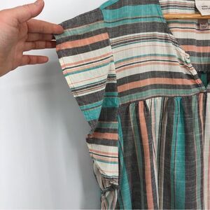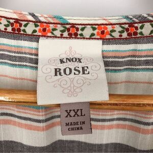 Knox Rose Shirt Womens XXL Striped Split Neck Flutter Sleeve Colorful Artsy