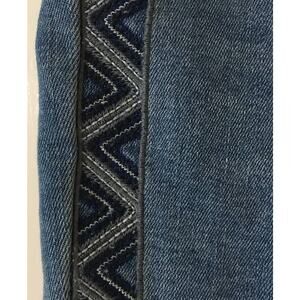 Knox Rose size 12 skinny jeans with tuxedo stripes. 62% cotton 23% polyester 12% rayon 3% spandex, machine wash cold, tumble dry low.