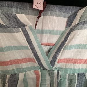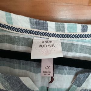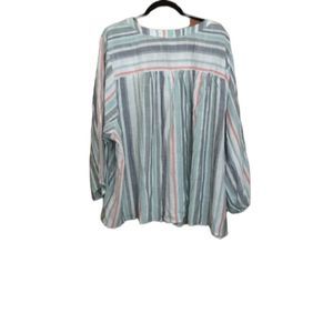 Knox Rose | Size 4X Striped Bishop/Peasant 3/4 Sleeve Embroidered Blouse