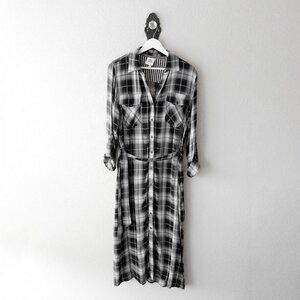 Knox Rose Size Medium Midi Shirt Dress Black White Plaid Button Front Belted