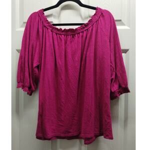 Knox Rose Size XXL Hot Pink On or Off Shoulder Smocked Neck Bishop Sleeves Top