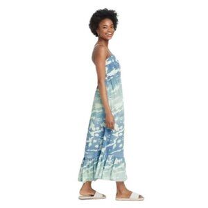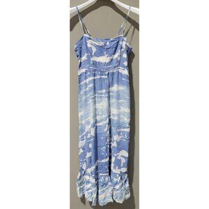 Knox Rose Sleeveless Blue & White Print Tiered Maxi Knit Sun Dress -- Size Small