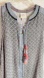 Gray & blue w/ black diamond print. Has tassel tie front detail and black scalloped edge trim. Features loose tunic top fit in lightweight fabric with high low hem.