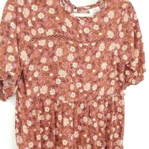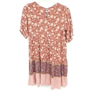 Knox Rose Small Pink Floral Mixed Print Mini Dress Boho Bohemian. Good used condition, some wash wear throughout.