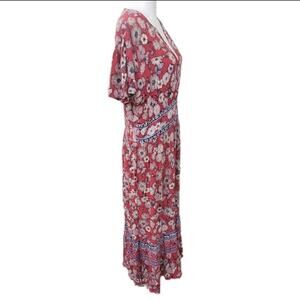 Knox Rose Strawberry Jam Red Floral Summer Midi Dress Size XL V Neck Boho