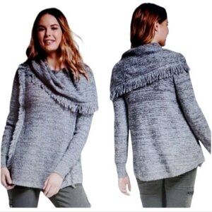 Knox Rose Sweater Fringe Rag Cowl Neck GRAY Women's WOMAN'S Size Small