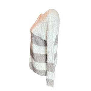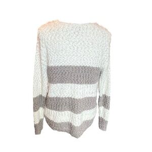 Knox Rose Sweater Womens Size Small Gray Off White Stripes Chunky Knit V-neck