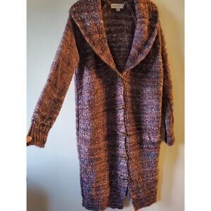 Knox Rose Sz L Long Chunky Knit Button Front Cardigan Sweater Coat Wool Alpaca
