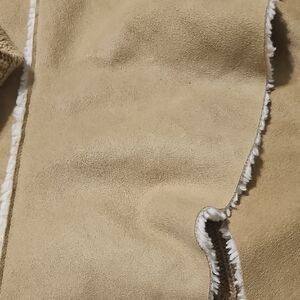 Cozy tan knit with soft cream shearling detail. Perfect for layering.