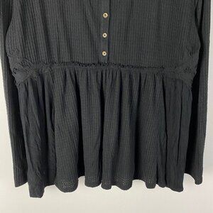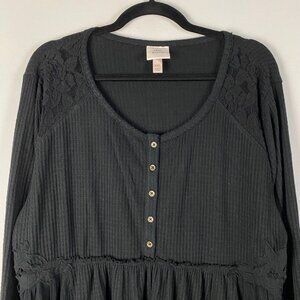 Knox Rose Thermal Shirt XXL Black Lace Accent Boho Peasant Black Long Sleeve