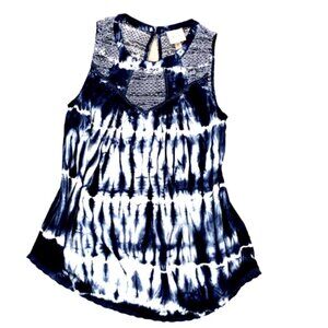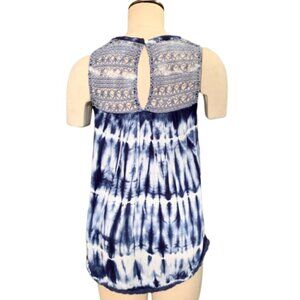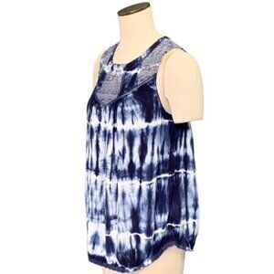 Knox Rose Tie Dye Sleeveless Tank Top Crochet & Ladder Lace Sz M Blues 74F