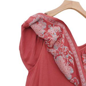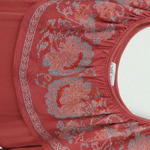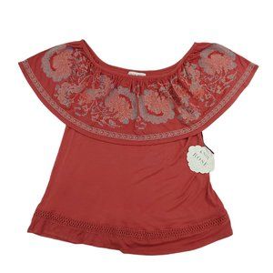 Knox Rose Top Blouse Womens Small Rust Sleeveless Embroidered Bohemian