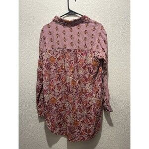 Knox Rose Top Women Large Pink Woodland Florals Button Up Linen Blend Asymmetric