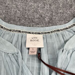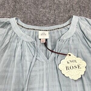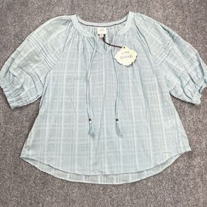 Knox Rose Peasant Top Womens Large. Puff Elbow Sleeves. Tasseled. Monaco Blue. NEW With Tags.