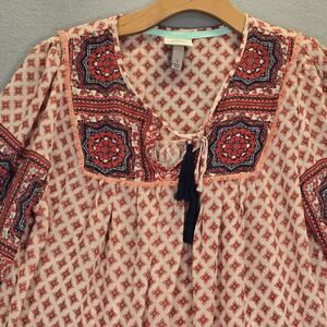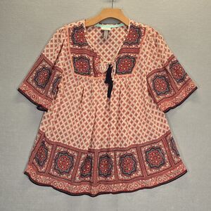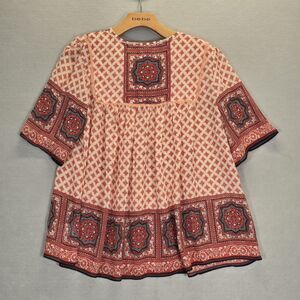 Knox Rose Top Womens Size 1 Orange Red Sheer Boho Babydoll Artsy