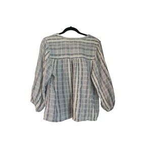 Knox Rose Top Women's Size L Blue Ivory Striped Cropped 3/4 Sleeve Popover