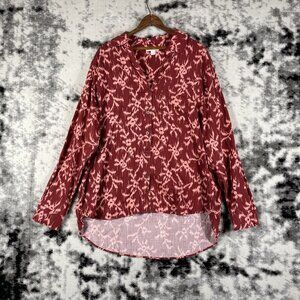 Knox Rose Top Womens Size Large Button Up High Low Hem V-Neck Collared