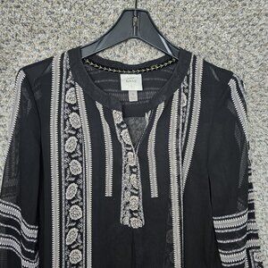 Knox Rose Top Womens Small Black Sheer Tunic Boho High Low Blouse Ladies
