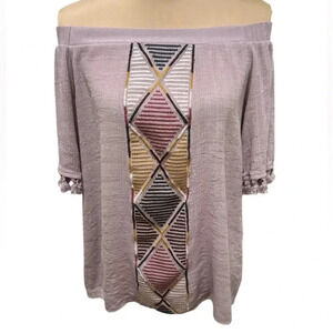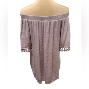 Knox Rose Top Womens Sz Med Purple Embroidered Southwestern Off Shoulder Tassel