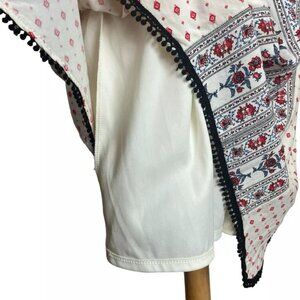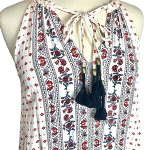 Knox Rose Trapeze Dress S Tassel Tie Pom Boho Red Black Lined Sleeveless Halter