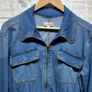 Knox Rose Utility Denim Barn Jacket Blue Long Sleeve Pockets Full Zip Size Small