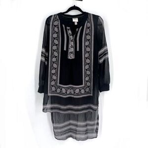 Knox Rose Women Floral Print Bohemian V-Neck Swimming Cover-Up Black Size Small