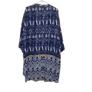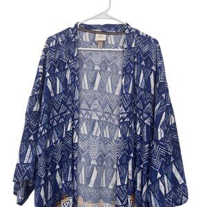 Knox Rose Women SZ XL/XXL Blue & White Rayon Kimono Cardigan Relaxed Fit