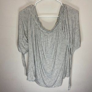 Knox Rose Women XL Striped Peasant Top Blouse Off Shoulder Tie Short Sleeve Boho