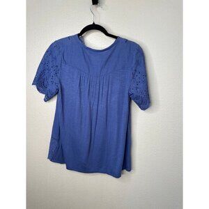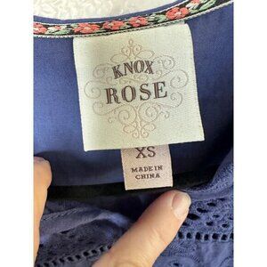 Knox Rose Women's Blue Blouse Size X-Small short sleeve 100% Cotton v-neck