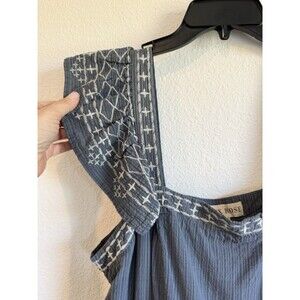 Knox Rose Women's Blue Embroidered Flutter Sleeve Tiered Maxi Dress Large
