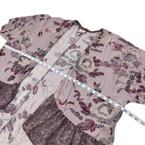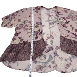 Knox Rose Womens Boho Floral Kimono Cardigan Jacket Size L Burgandy /Pink