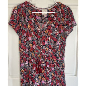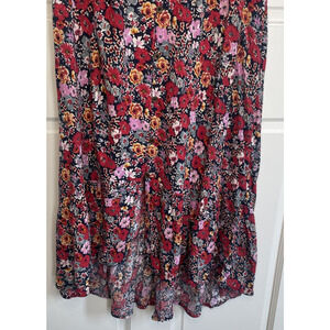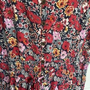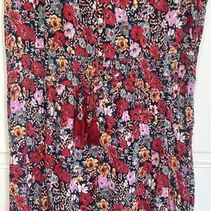 Knox Rose Women's Boho Floral Smocked Dress Sz L Tassel Button Front Ruffle