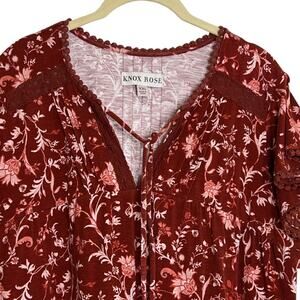 Knox Rose Womens Boho Peasant Dress XXL Red Floral Tiered Cotton Blend Short Sleeve